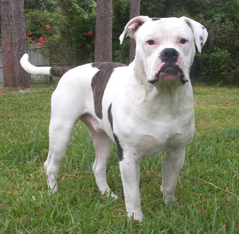 Displaying an unexaggerated and natural bulldog type, the Alapaha is nevertheless a sturdy, well-developed, and muscular breed. Descriptions of its size vary greatly, calling for males anywhere from 75 to 95 pounds (34 to 43 kg) give or take 10 lbs standing 22 to 26 inches (56 to 66 cm) at the withers, females smaller at 60 to 70 pounds (27 to 32 kg). Ears and tail are natural, with no cropping or docking. Colors of the Alapaha are varied, typically white or different shades of black, grey, red, white, fawn, brindle, brown, buckskin, or mahogany, always Trimmed with white markings; some dogs are piebald spotted.
